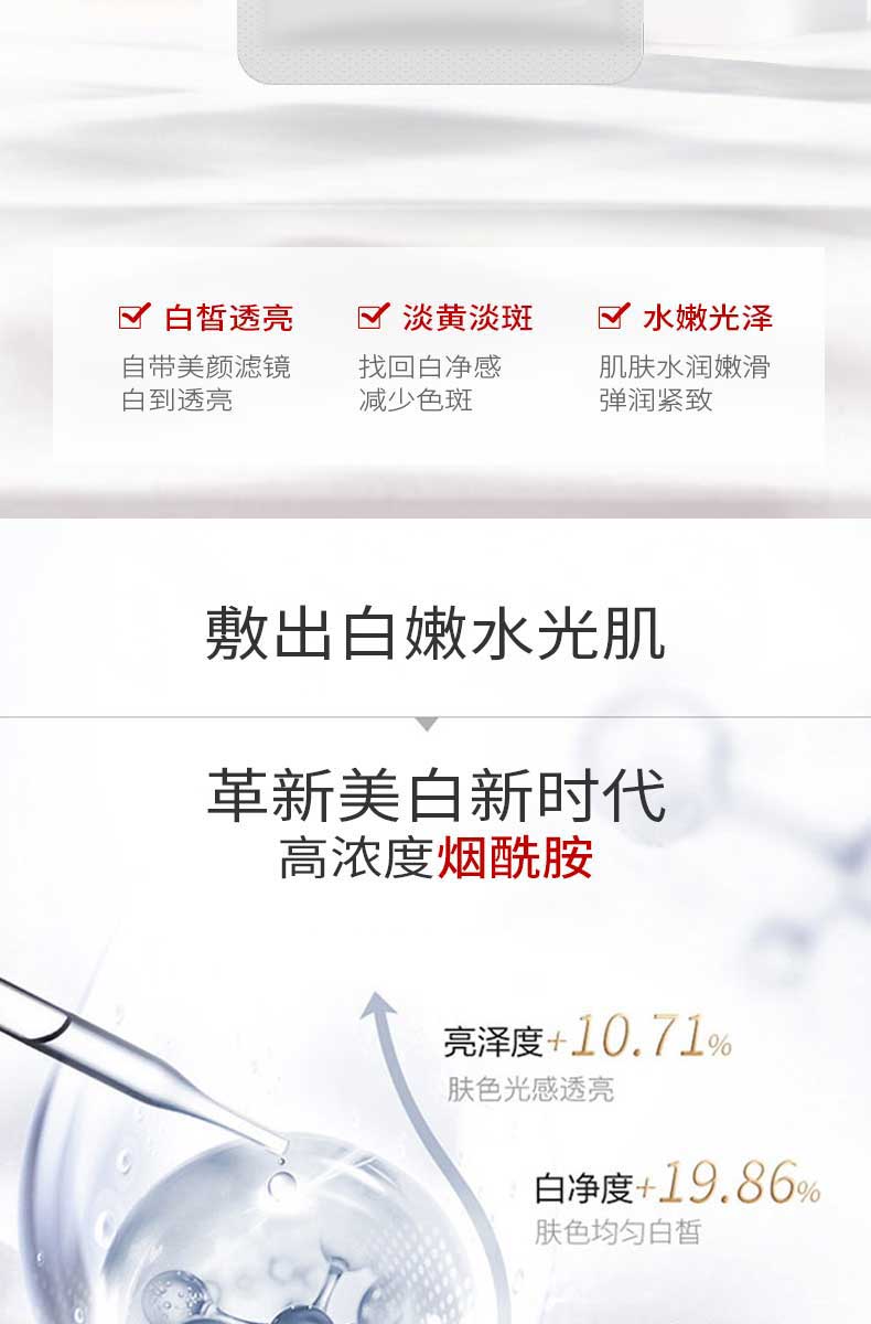 含煙酰胺成分,給肌膚提供營養(yǎng),提亮膚色,美白淡斑,搭配透明質(zhì)酸鈉,補(bǔ)水滋潤,改善粗糙干燥,潤滑細(xì)紋,