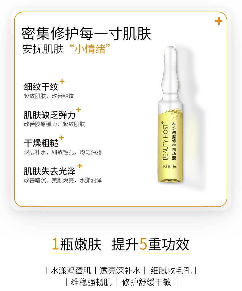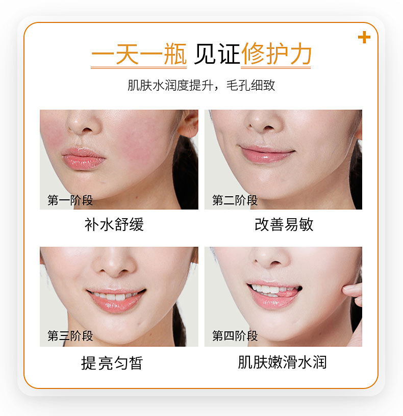 能幫助肌膚改善細紋,干燥,煥亮膚色,令肌膚滋潤透亮。一支修護精華液,能修護肌膚,維持肌膚穩(wěn)定,而普通精華液只能起到簡單的保養(yǎng)作用。一天一支給你的顏值加分,滋潤亮澤小臉蛋