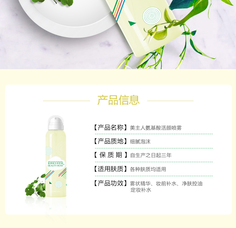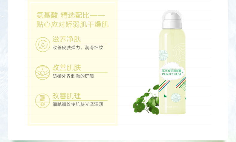 蘊含氨基酸精華盒保濕成分,給缺水肌膚補充水分,滋養(yǎng)凈肌、潤滑細紋、在肌膚上輕輕一噴,滴滴潔凈、絲絲潤養(yǎng)、令肌膚潤澤、清爽、煥發(fā)迷人美肌。