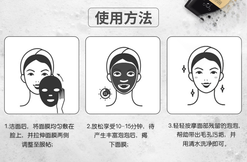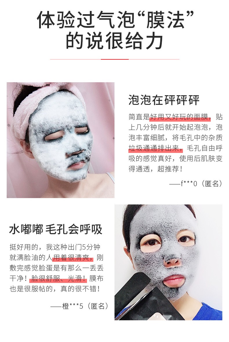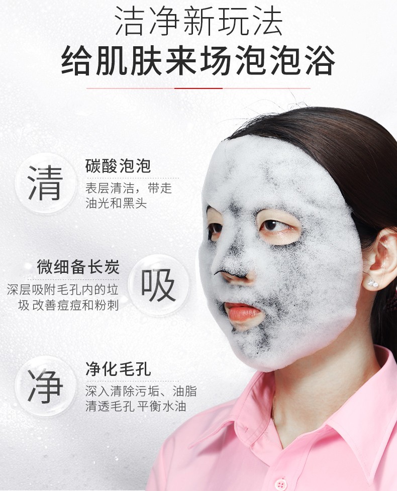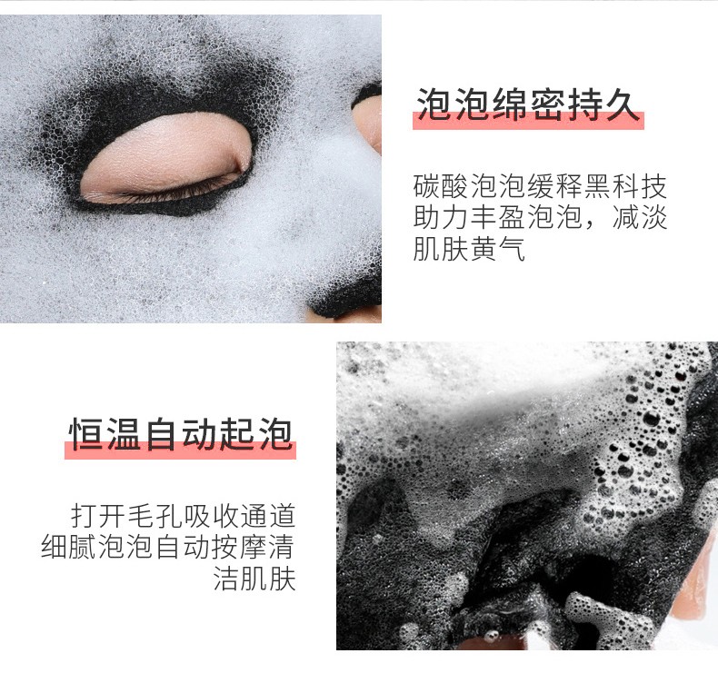然竹炭膜布材質(zhì),給毛孔深層清潔是毛孔的吸層器,專門針對(duì)毛孔粗大,黑頭暴漲,粉刺痘痘,粗糙油膩等問題肌膚。活氧碳酸泡泡,給表層清潔帶走有光和黑頭;微細(xì)備長(zhǎng)炭可達(dá)到深層吸附毛孔內(nèi)的垃圾,改善痘痘和粉刺;凈化毛孔 深入清除污垢,油脂清透毛孔達(dá)到水油平衡。