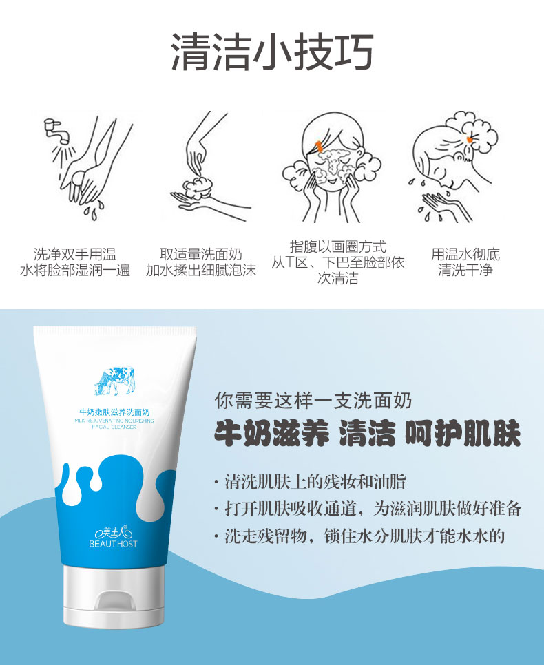 溫和清潔肌膚污垢及多余油脂,同時為肌膚補充水分,濕潤并調(diào)節(jié)肌膚的水油平衡,潔凈不緊繃,令肌膚柔滑、 清爽、不油膩,含牛奶提取物,滋養(yǎng)肌膚,使肌膚水量,緊致有光澤,洗出清爽柔嫩牛奶肌。