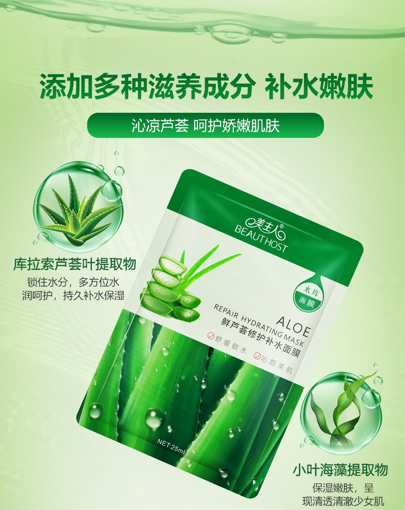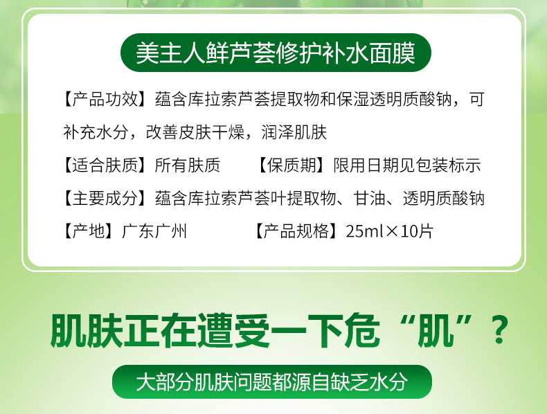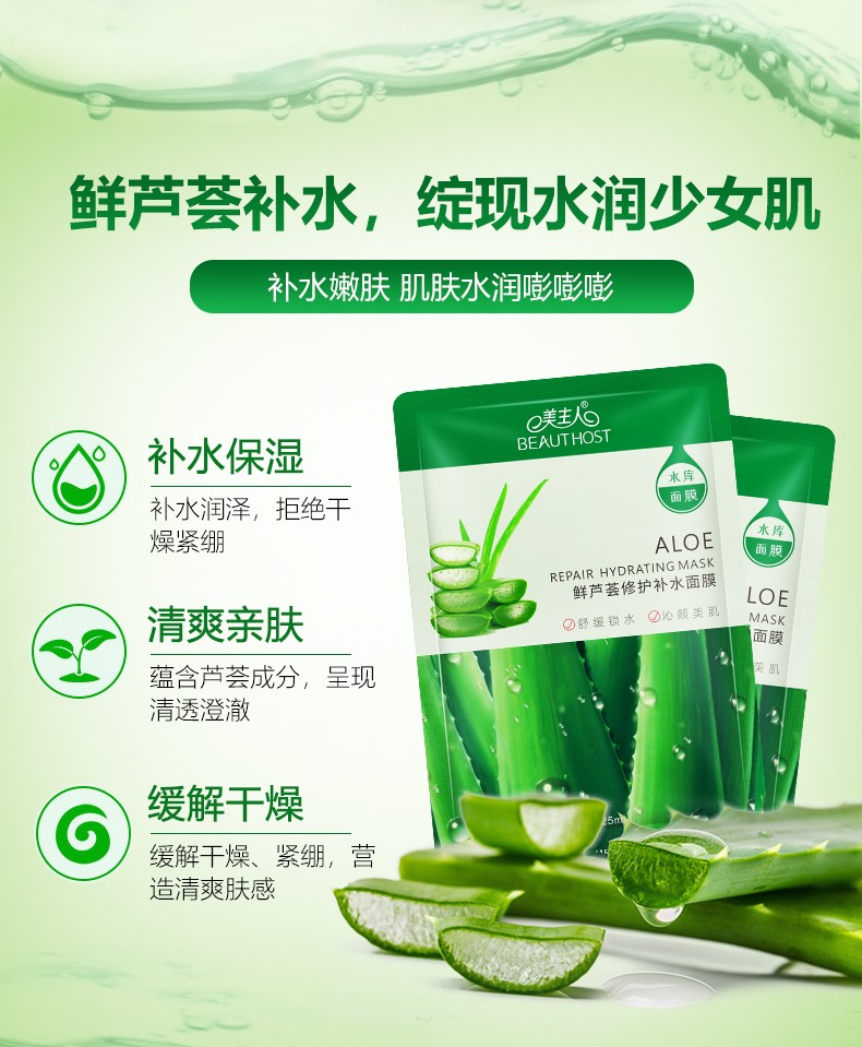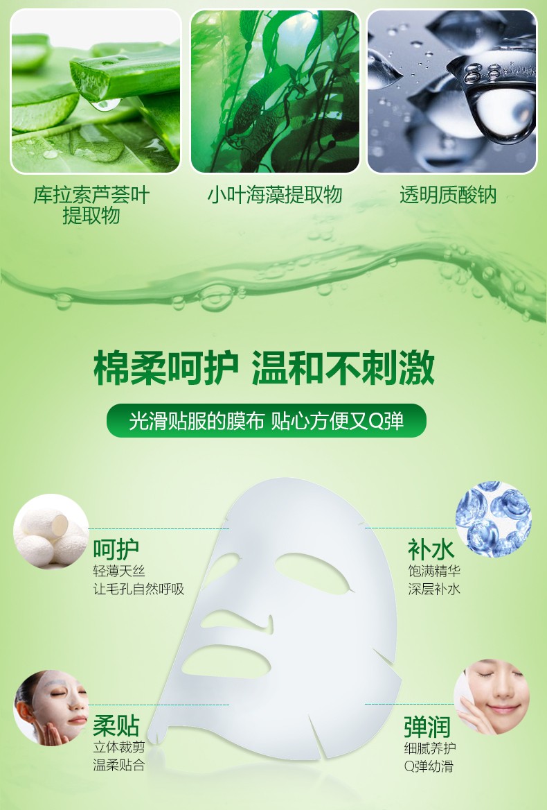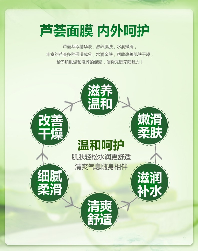 蘊(yùn)含庫拉索蘆薈提取物和保濕成分透明質(zhì)酸鈉, 可補(bǔ)充肌膚水分, 潤澤肌膚, 改善肌膚干燥, 使肌膚水潤飽滿, 平滑緊致有彈性,堅持使用, 能修護(hù)肌膚并改善因缺水引起的問題。