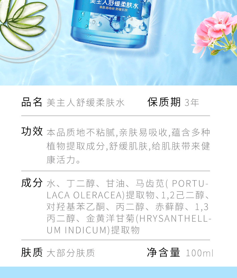 新品:美主人舒緩柔膚水