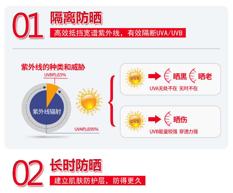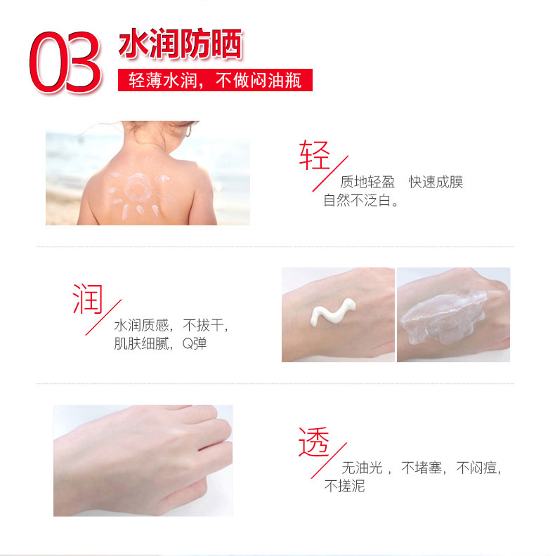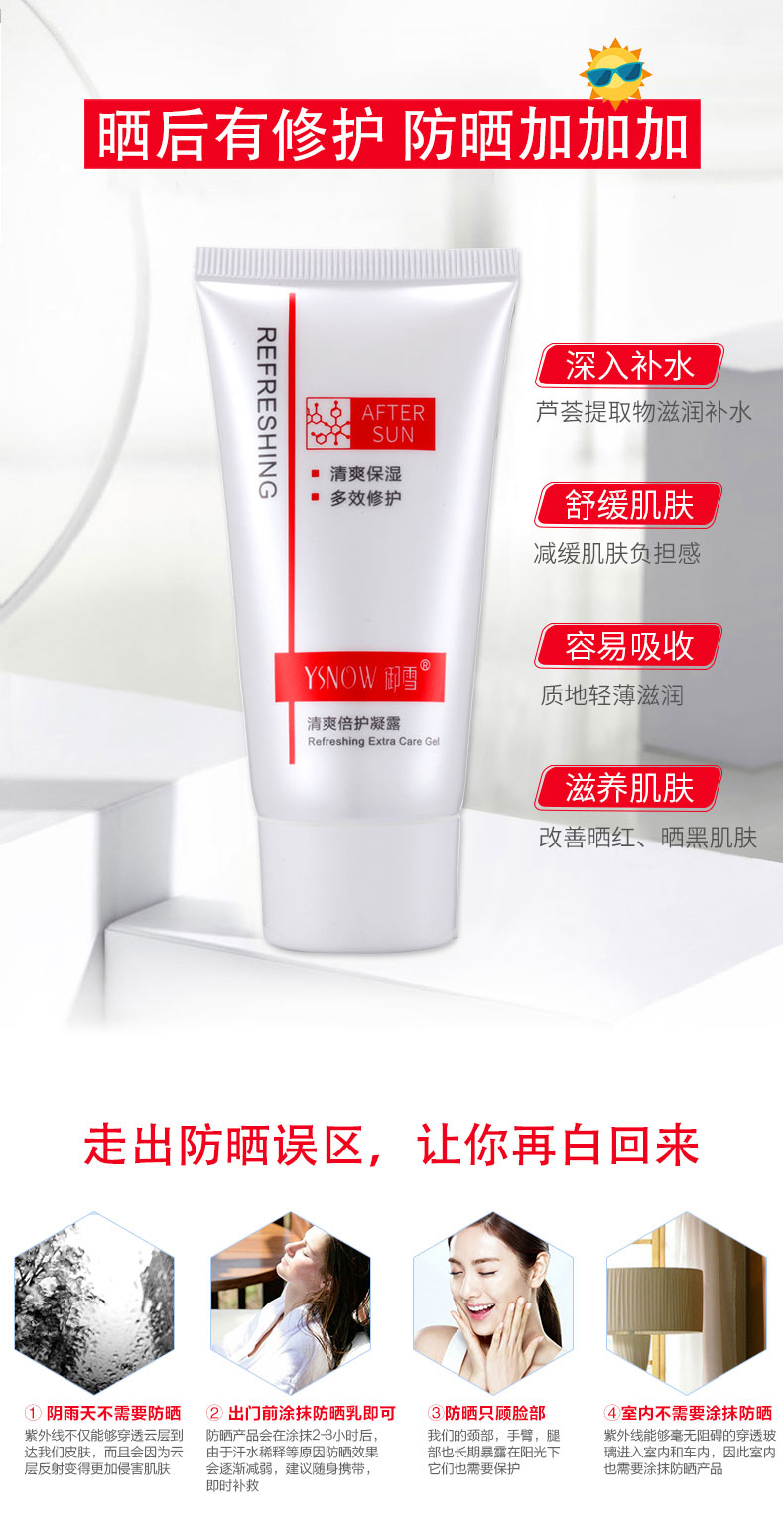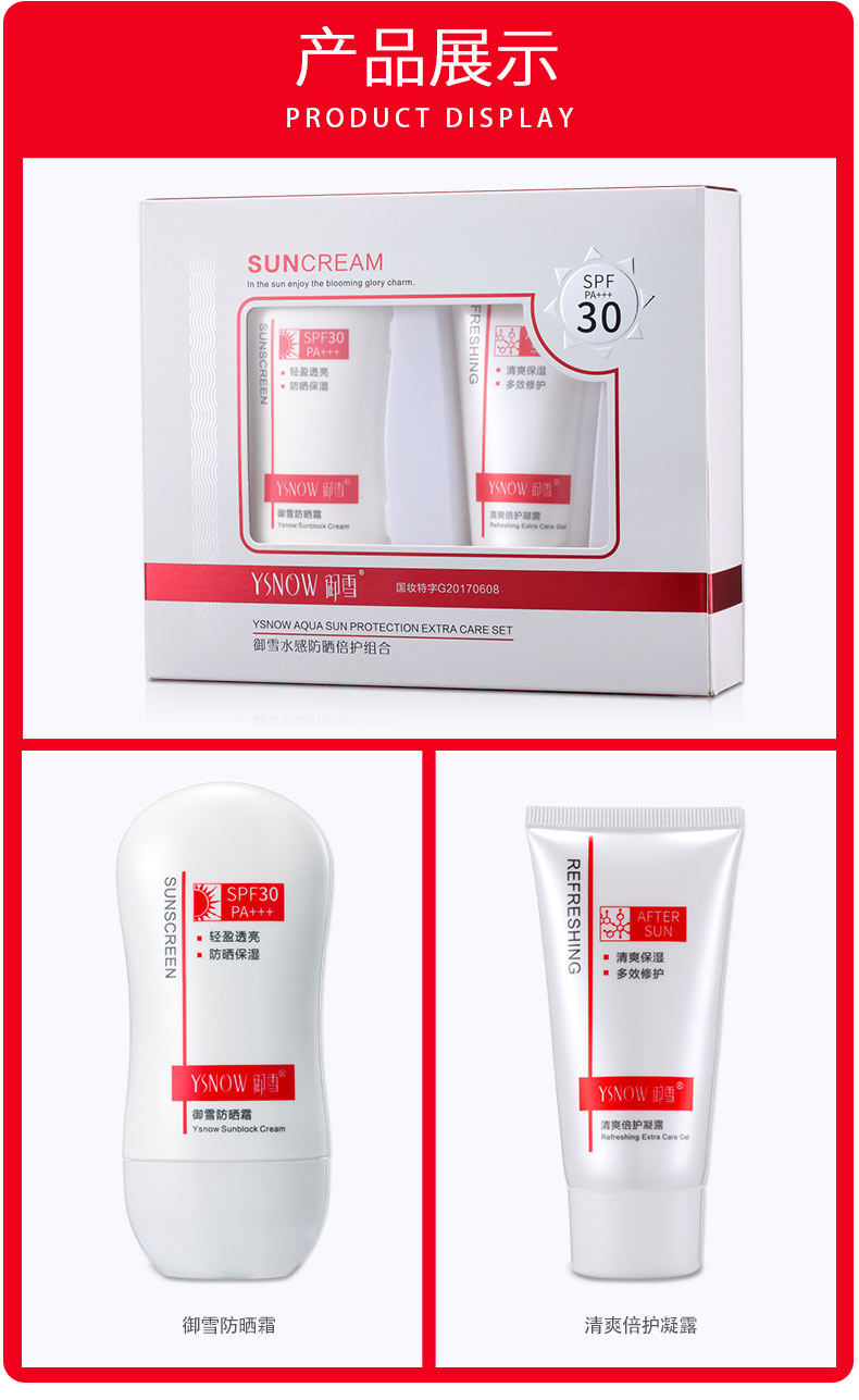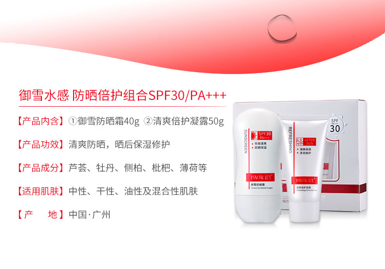 防曬霜功效:清爽透氣,適合常年使用,輕盈貼膚質(zhì)地,涂抹間帶你溫柔呵護(hù),在防曬同時(shí)享受水潤(rùn)舒感,讓你自由自在陽(yáng)光下盡情綻放魅力光彩 修護(hù)液功效:清爽啫喱質(zhì)地,涂抹間充分揉出肌膚,幫助改善肌膚干燥與不適問(wèn)題,令肌膚倍感舒適,富含多種植物保濕精華,減少油光,自然修護(hù),增加肌膚,彈潤(rùn)度,煥現(xiàn)肌膚水潤(rùn)光澤