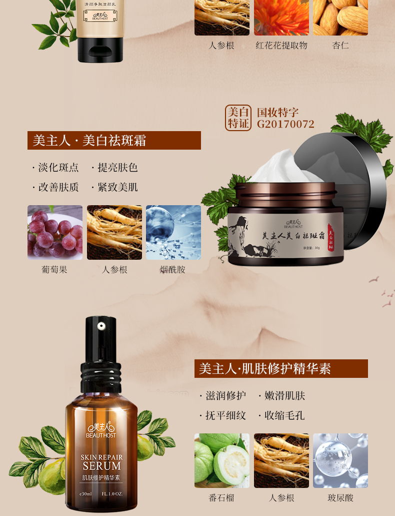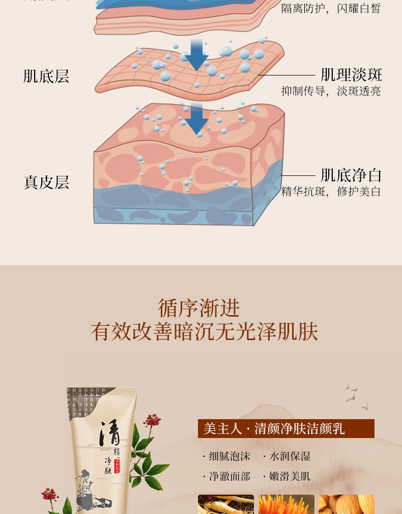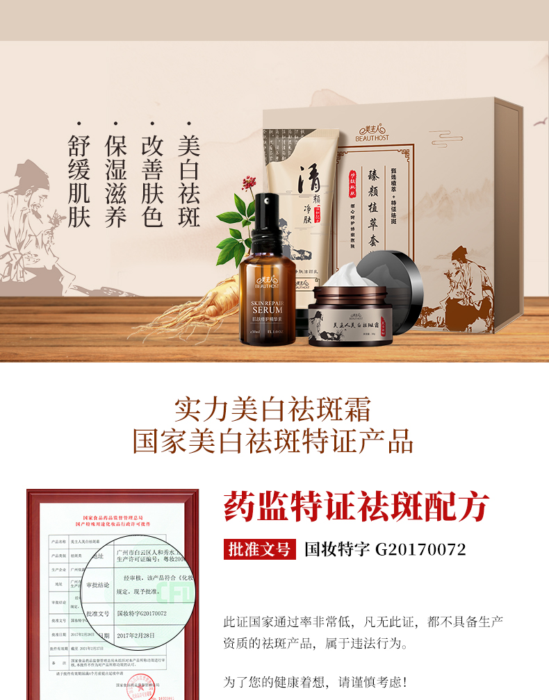 持有國家藥監(jiān)局頒發(fā)美白祛斑特證的一款祛斑霜,安全可靠的植物配方,蘊含煙酰胺、抗壞血酸、人參提取物等多種成分,深入肌底直擊斑點源頭,抑制黑色素形成,改善斑點肌膚,使肌膚回復(fù)光滑白嫩。