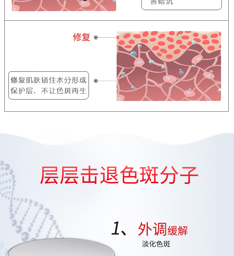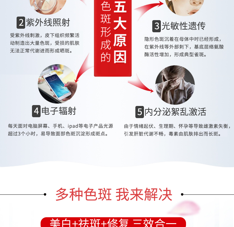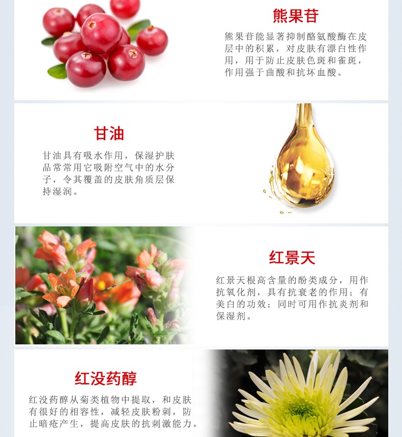 蘊含植物精粹及豐富的營養(yǎng)成分,為肌膚變得水潤透亮。美白淡斑,鎖定水分,淡化改善斑點肌膚 白晳凈透,揮別暗沉。水潤滋養(yǎng)。密集補充水分,滋養(yǎng),潤澤干燥肌膚,鎖住水分。光采透亮修護改善,暗啞膚色狀態(tài),提亮肌膚,使肌膚光彩亮麗